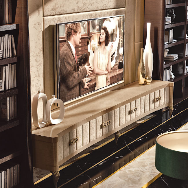 Благородная древесина, наполненная жизнью. Изысканные очаровательные оттенки — отличительная черта стилистического почерка Valderamobili: эксклюзивная отделка, разработанная с использованием передовых технологий, помогающих подчеркнуть прожилки и оттенки, украшает любую поверхность. Древесина сочетаются с мрамором, металлом и тканями. Оригинальные эксклюзивные комбинации улучшают дизайн и отвечают конкретным техническим и эстетическим задачам