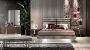 Расцветка, отделка и детали делают мебель «Valderamobili» уникальной и неповторимой. Кровать Park king size с боковыми выступами для прикроватных тумб и светодиодами, вставленными в изголовье и основание кровати, придает спальне элегантность и утонченность.
